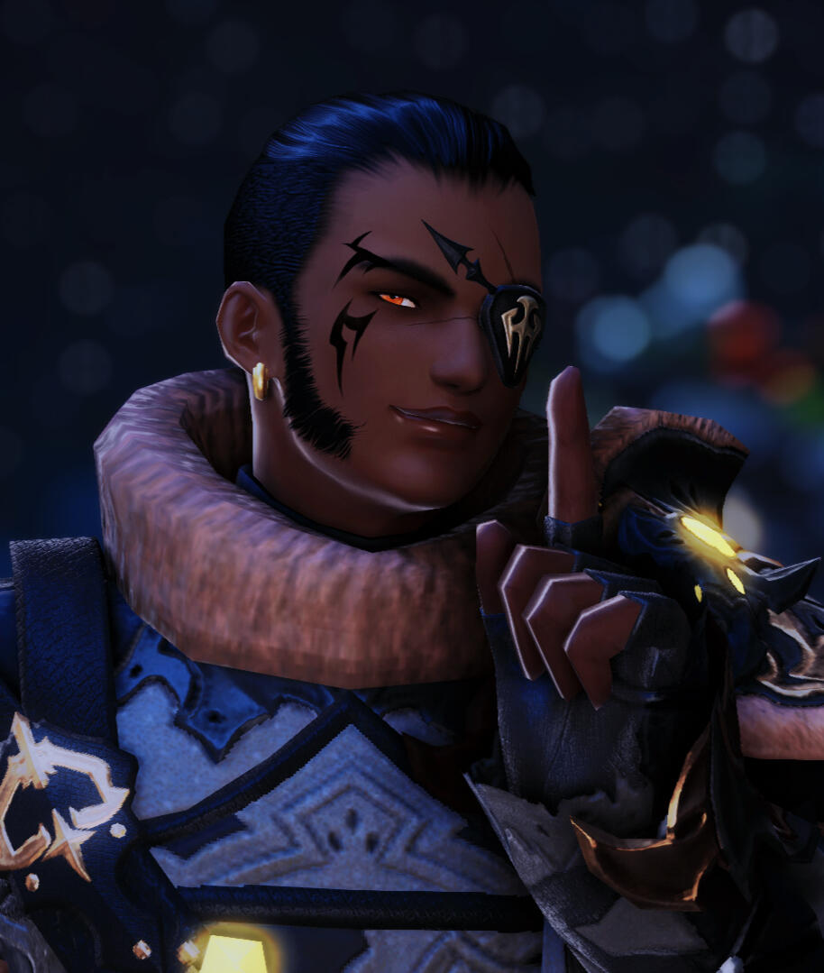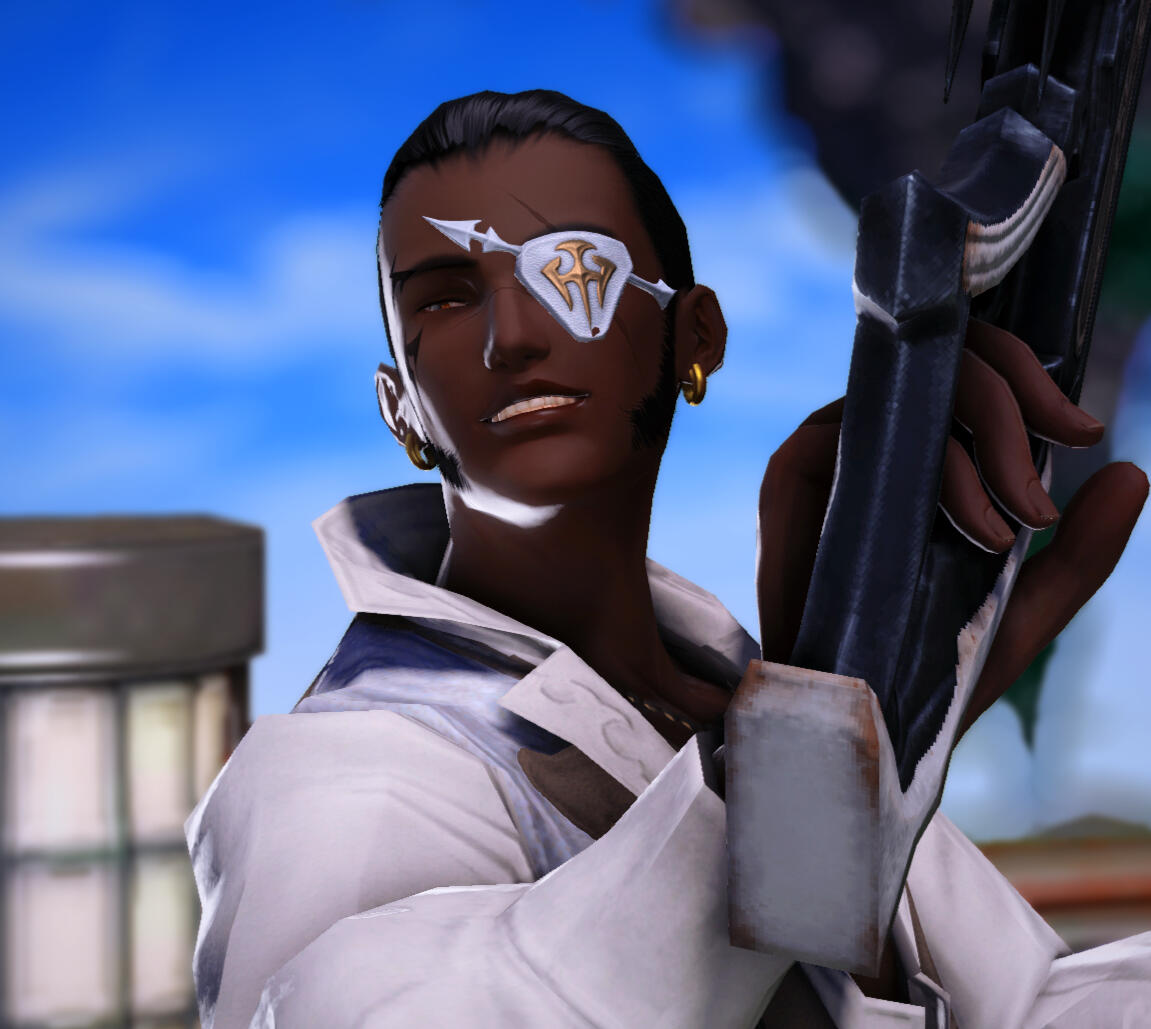 APPEARANCE: Tall, squarish, with a fit but stocky build. Scars around his left eye look relatively fresh, and he does not seem accustomed to his eye patch yet. His visible eye is the color of the sunset. His voice is deep and smooth, with a thick Hingan accent.
